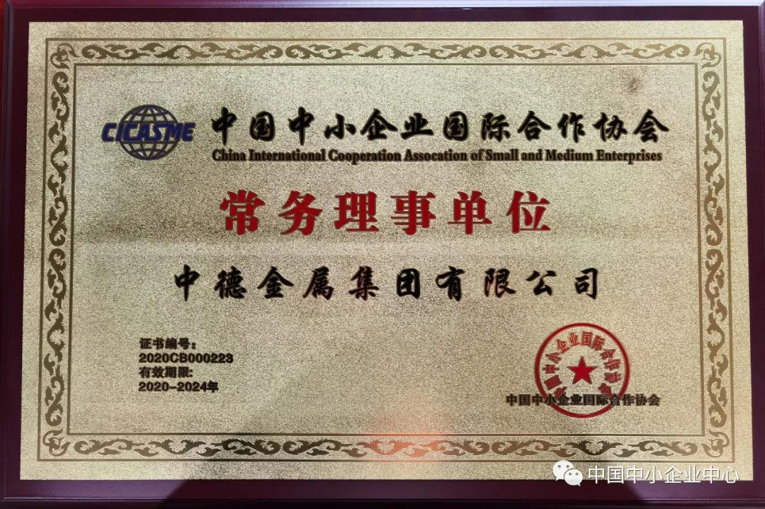 征程萬里風(fēng)正勁,重任千鈞再揚(yáng)鞭。中德金屬集團(tuán)始終不忘初心,大力倡導(dǎo)對外開放合作、資源互聯(lián)互通,持續(xù)提升品牌效應(yīng)和業(yè)務(wù)能力,與國內(nèi)外政商界進(jìn)行聯(lián)合創(chuàng)新,促進(jìn)經(jīng)貿(mào)合作。本次入選理事單位充分體現(xiàn)了中國中小企業(yè)國際合作協(xié)會對我司的認(rèn)可。中德金屬集團(tuán)將忠實(shí)履行常務(wù)理事單位的義務(wù)與責(zé)任,加強(qiáng)與中小企業(yè)的緊密交流與溝通,投入更多的國內(nèi)外資源,努力推進(jìn)中國中小企業(yè)的蓬勃發(fā)展,經(jīng)濟(jì)騰飛。