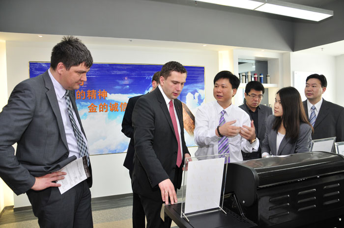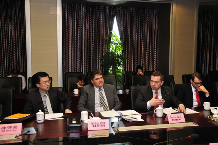 市長(zhǎng)助理麥延厚首先對(duì)杜里希一行的到來表示熱烈歡迎。隨后雙方共同聽取了中德金屬生態(tài)城城市規(guī)劃設(shè)計(jì)報(bào)告,對(duì)金屬生態(tài)城項(xiàng)目的總體情況有進(jìn)一步的了解。杜里希先生在產(chǎn)品質(zhì)量、教育模式、基礎(chǔ)設(shè)施、能源消耗等方面向我方代表介紹了的德國(guó)工業(yè)政策,以及德國(guó)企業(yè)家在中國(guó)太倉(cāng)投資的經(jīng)驗(yàn)與遇到的問題。杜里希先生表示,希望中德雙方在平等的層面上共商合作、相互借鑒,并以教育培訓(xùn)和產(chǎn)品質(zhì)量作為切入點(diǎn),最終實(shí)現(xiàn)中德金屬生態(tài)城的宏偉藍(lán)圖。