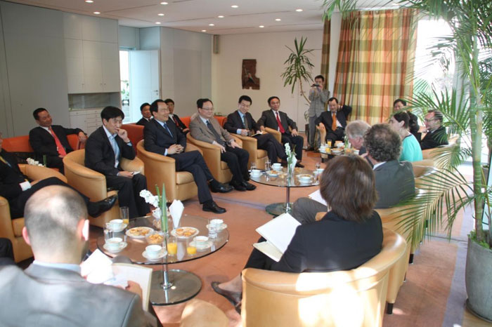 2013年5月30日,在李克強(qiáng)總理成功結(jié)束德國訪問之行,掀開兩國合作新篇章的關(guān)鍵時(shí)刻,揭陽市市長陳東率團(tuán)赴京專程拜訪德國駐華大使館,就兩國在中德金屬生態(tài)城開展合作與德國駐華大使施明賢博士進(jìn)行深入交流,形成了加強(qiáng)中德合作的一系列共識(shí)。參與此次拜訪活動(dòng)的還有廣東外經(jīng)貿(mào)廳副廳長陳越華,中聯(lián)部西歐局副處長孫守亮,揭陽市政府秘書長蔡榜藩,揭東區(qū)區(qū)長陳家鵬,揭陽市金屬企業(yè)聯(lián)合會(huì)會(huì)長吳克東,廣東中德雙元職業(yè)教育投資有限公司總經(jīng)理姜增彬等。