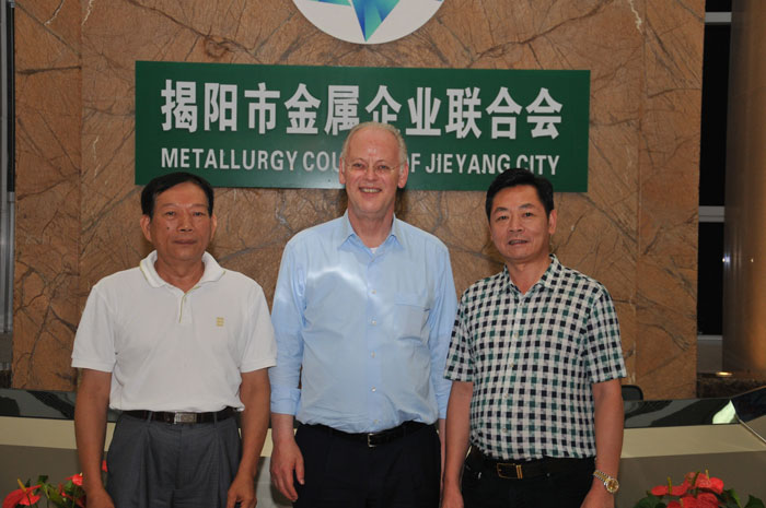 隨著中德合作日臻成熟,企業(yè)對接順利開展,2013年7月11日下午,德國前國防部長、德國社民黨前主席、RSBK魯?shù)婪蛏碃柶綉?zhàn)略咨詢交流有限責(zé)任公司總裁魯?shù)婪颉ど碃柶较壬俅物w赴揭陽,與揭陽市金屬企業(yè)聯(lián)合會進(jìn)行新一輪會談,商討進(jìn)一步落實中德合作成果。揭陽市長陳東,揭陽市金屬企業(yè)聯(lián)合會會長吳克東,執(zhí)行會長林眾偉,高級顧問曹白雋,以及林曉平、孫耿豪、黃烈標(biāo)、周凱練、周潮開等金屬企業(yè)家共同出席本輪會談。