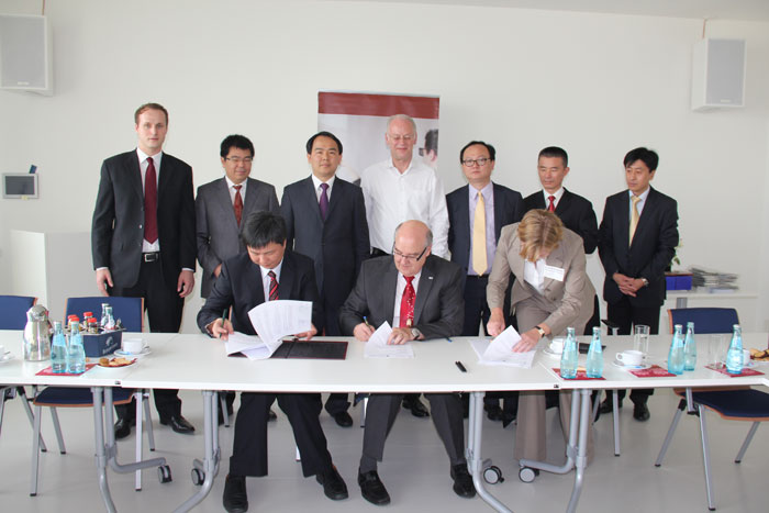 揭陽市金屬企業(yè)聯(lián)合會吳克東會長與達(dá)姆施塔特應(yīng)用科技大學(xué)校長Stengler教授簽訂職業(yè)教育合作框架協(xié)議