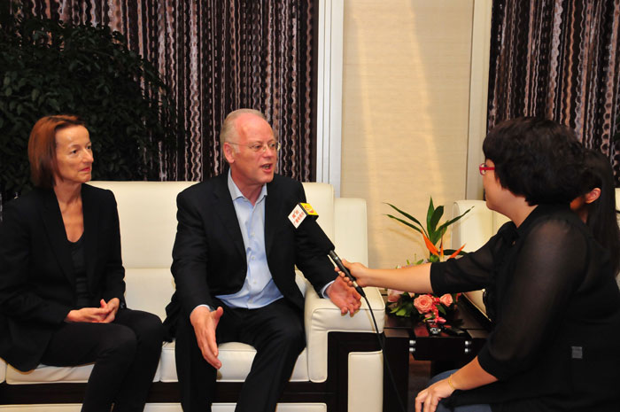 會談后,沙爾平夫婦就項(xiàng)目合作最新成果接受記者采訪