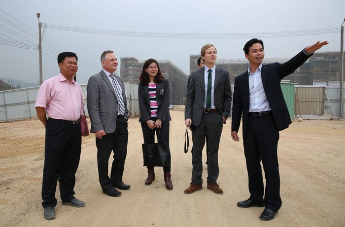 黑爾格•紐曼(左二)及薩沙•布林克霍夫(右二)現(xiàn)場考察中德金屬生態(tài)城