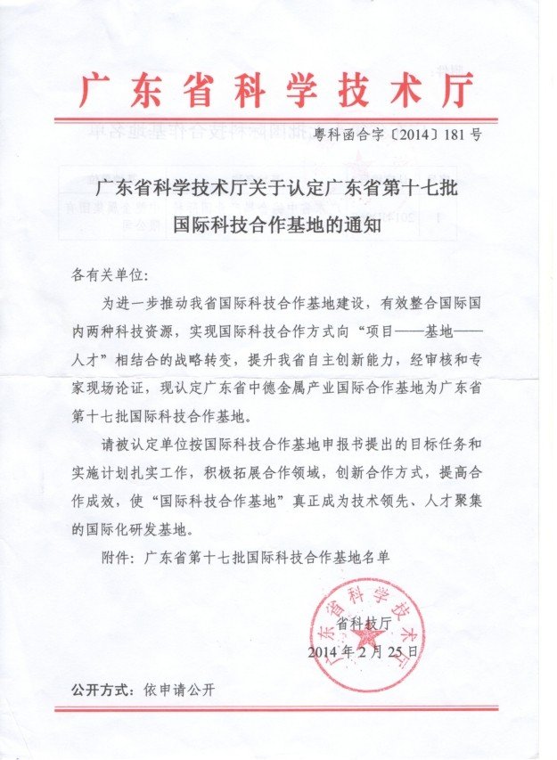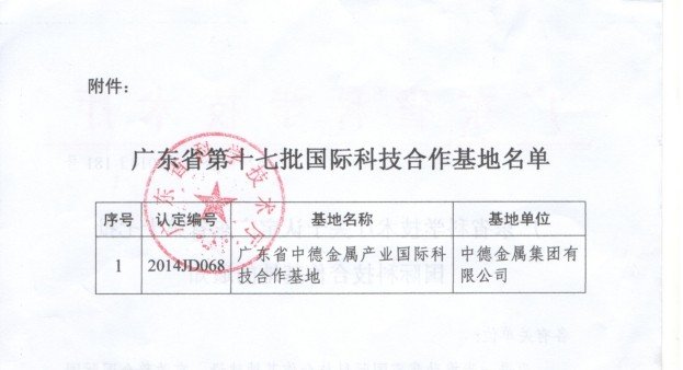 近日,中德金屬產(chǎn)業(yè)國(guó)際合作基地被廣東省科學(xué)技術(shù)廳認(rèn)定為廣東省第十七批國(guó)際科技合作基地,標(biāo)志著中德金屬集團(tuán)有限公司在整合國(guó)內(nèi)外科技資源、引進(jìn)專(zhuān)業(yè)技術(shù)人才、提升自主創(chuàng)新能力等方面獲得省級(jí)認(rèn)可及重點(diǎn)支持,這將進(jìn)一步加快基地高新企業(yè)集聚,助推中德合作、綠色發(fā)展更上新臺(tái)階。