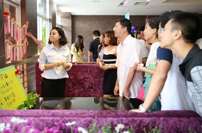活動現(xiàn)場熱鬧非凡,參與者穿梭于8個游戲攤位,或同臺競猜,或單人應(yīng)戰(zhàn),或協(xié)力攻關(guān),掌聲和歡呼聲此起彼伏。集印花、贏獎品,大家玩得不亦樂乎,到處洋溢著歡樂的氣息。此次活動不僅提前預(yù)熱了中秋節(jié)的氛圍,也加強(qiáng)了員工內(nèi)部的溝通,更彰顯公司和諧的文化氛圍,增進(jìn)了集團(tuán)的凝聚力與外來員工的歸屬感。