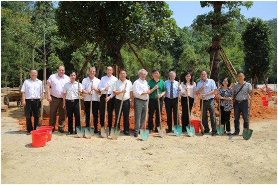 迪特•洪德一行與區(qū)領(lǐng)導(dǎo)、中德金屬集團(tuán)董事長(zhǎng)吳克東等在森林文化公園植樹后合影