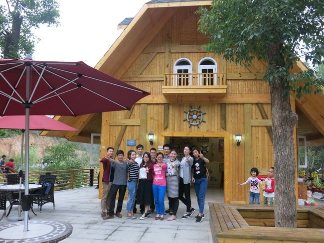 “壽星們”與活動負責(zé)人在特色布谷屋前合影,定格這歡樂一刻