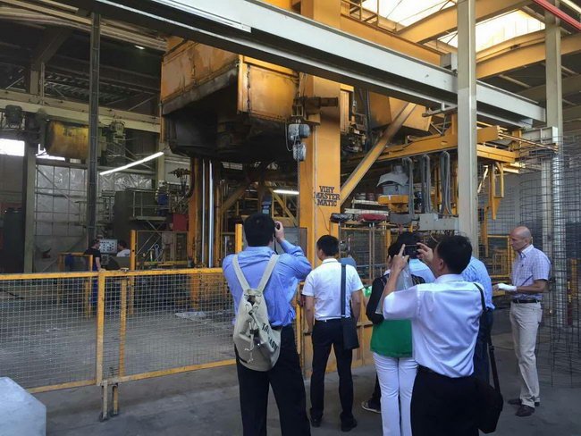 代表團考察哈巴公司的混凝土管道生產(chǎn)現(xiàn)場,聽取生產(chǎn)流程及制品質量等相關介紹