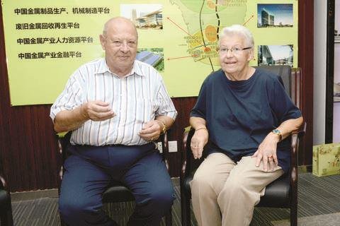 漢斯·撒特勒夫婦接受記者采訪。林潔松 攝