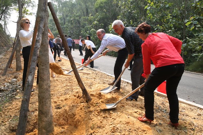 德國中小企業(yè)經(jīng)理人一行與揭陽市領(lǐng)導及企業(yè)家在中德萬畝森林公園共植友誼樹