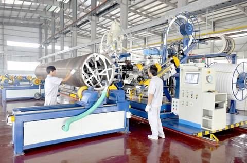 作為中德金屬生態(tài)城首批入駐的中德合資企業(yè),保庫(kù)智能將把德國(guó)保庫(kù)豐富的應(yīng)用經(jīng)驗(yàn)特別是城市地下蓄洪管網(wǎng)和反滲排水管網(wǎng)的應(yīng)用帶到中國(guó),這將有助于把傳統(tǒng)的現(xiàn)代化城市升級(jí)成可智能利用水資源的“海綿型”城市,其市場(chǎng)十分廣闊。該項(xiàng)目的第一條生產(chǎn)線正在進(jìn)行最后調(diào)試,預(yù)計(jì)12月份即可正式投產(chǎn)。在公司的遠(yuǎn)期計(jì)劃中,這種采用德國(guó)先進(jìn)設(shè)備和工藝、具有節(jié)能環(huán)保等特點(diǎn)的生產(chǎn)線還將增加至5條,預(yù)計(jì)年產(chǎn)量2萬噸,年產(chǎn)值超6億元。