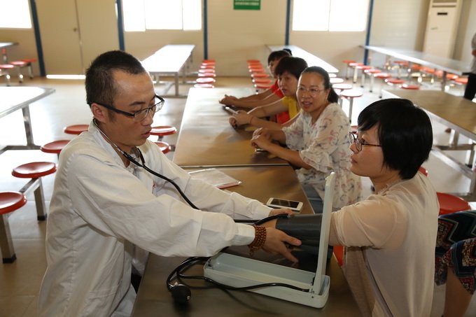 廣東省保健協(xié)會專家現(xiàn)場為職工測血壓