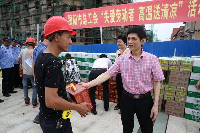 立秋雖過,暑熱難退。為做好高溫期間勞動者的服務工作,8月10日下午,揭陽市總工會走進中德金屬生態(tài)城,開展“關愛勞動者,高溫送清涼”活動,為奮戰(zhàn)在項目建設一線的職工送去解暑降溫的慰問品,傳達組織的問候與關懷之情。